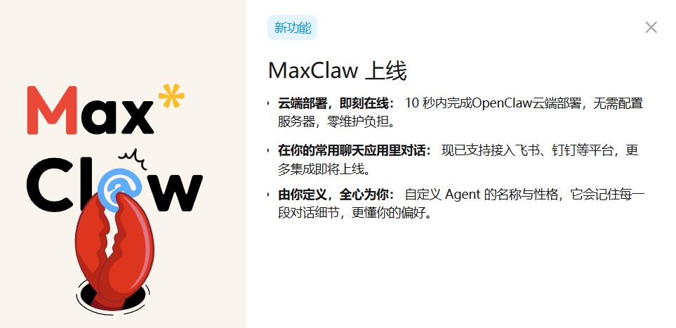 - 零技术门槛体验:MaxClaw云端服务,即时上手。