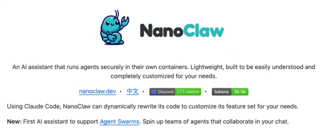 500行代码,用容器“硬隔离”换安全。如果说OpenClaw的复杂程度(约43万行代码)让部分开发者望而却步,那么NanoClaw则走向另一个极端——核心代码仅约500行,8分钟即可读懂全部逻辑。