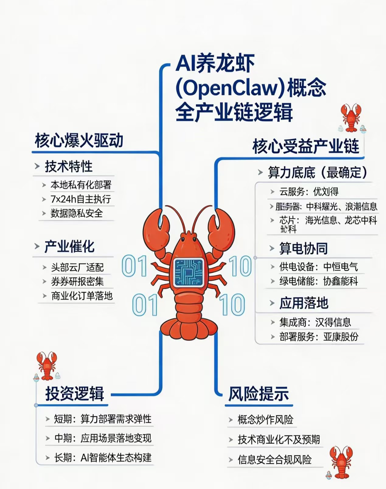 本文基于上市公司在“上证e互动”、“深交所互动易”等官方平台的公开回复,为您梳理“OpenClaw龙虾概念”的产业链图谱。以下内容仅为***息整理,不构成任何投资建议。