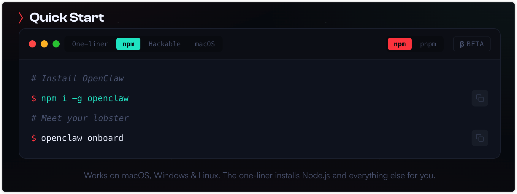 上述命令来源于 OpenClaw 官网:
