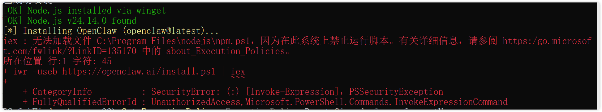 进在行安装 OpenClaw 的过程中,若是出现如下报错: