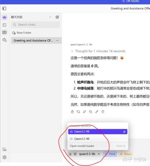4、下载好之后,在画圈处载入模型,然后可以马上开始对话,试一试啦。这个模型还支持图像输入。