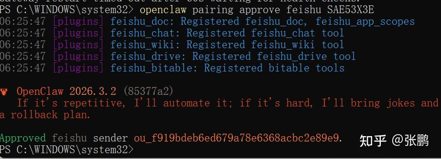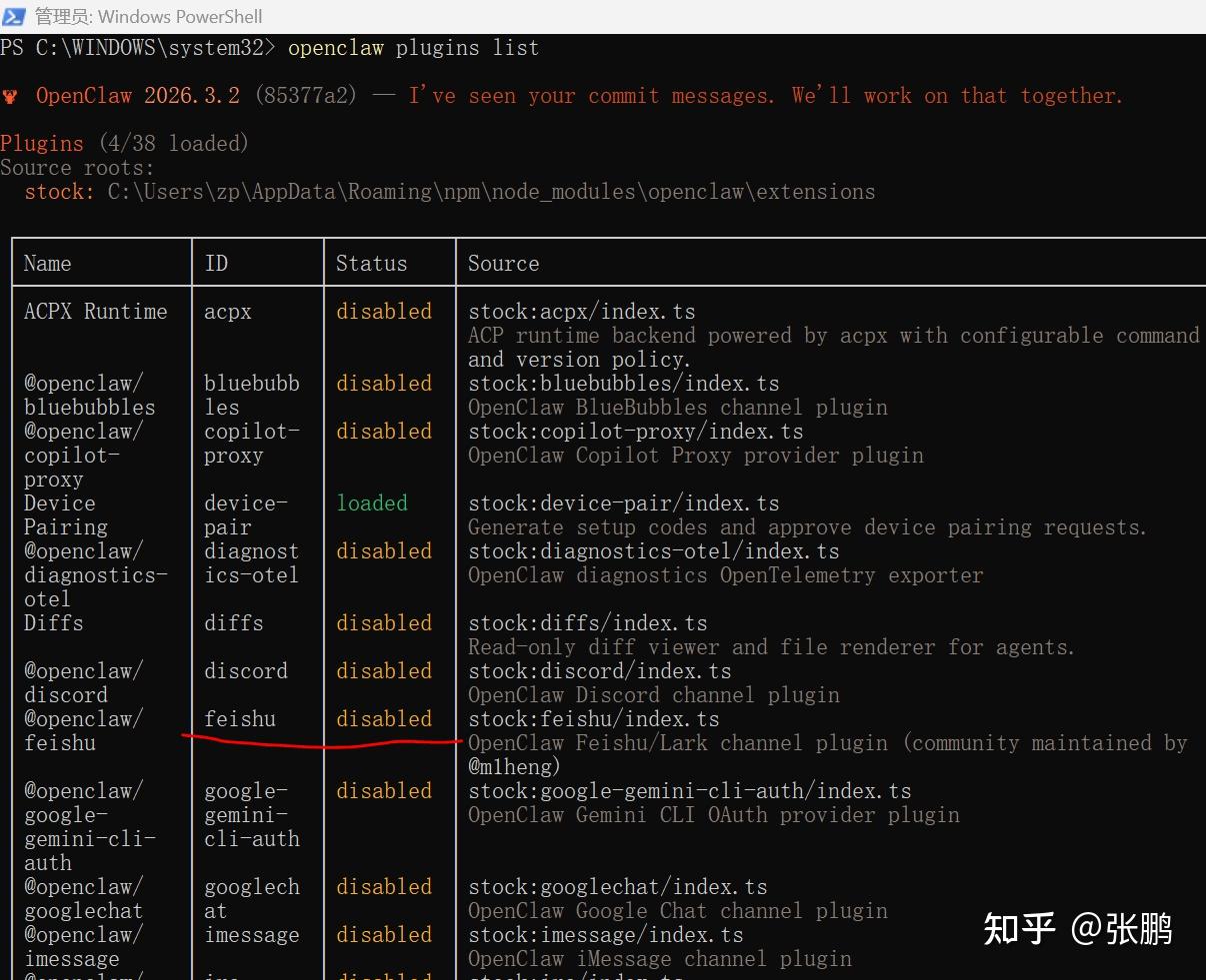 Openclaw已经内置了飞书插件,所以不用再下载,先运行