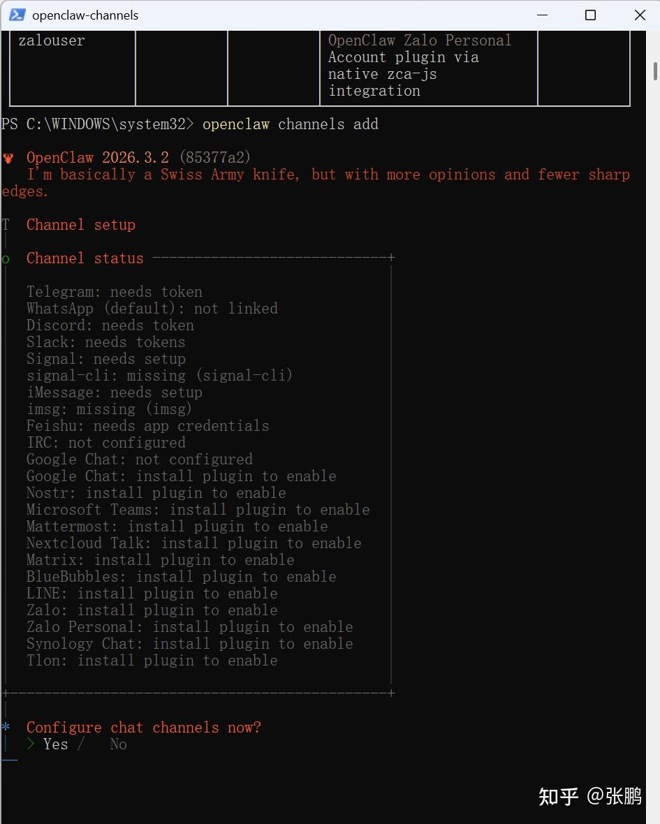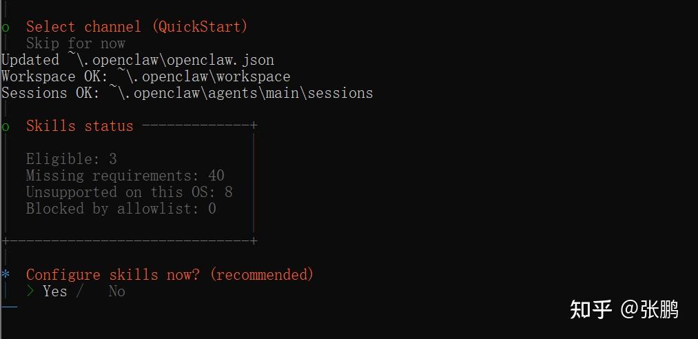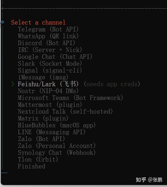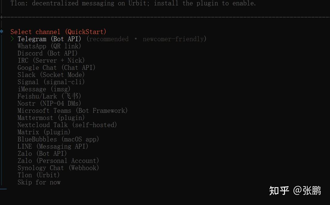 Channel先跳过,我们到后面再设置飞书,因为飞书已经内置了,不需要下载,只需要设置就好。