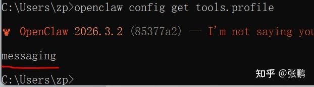 终端输入openclaw config get tools.profile