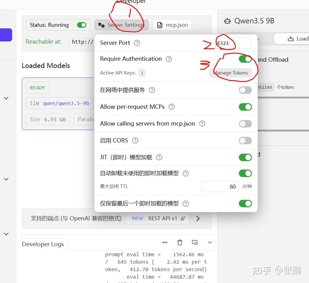 点击1处,进入服务器设置;点击2处,设置服务器端口;点击3处,可以开启并设置API Key(可以假装很高级)。