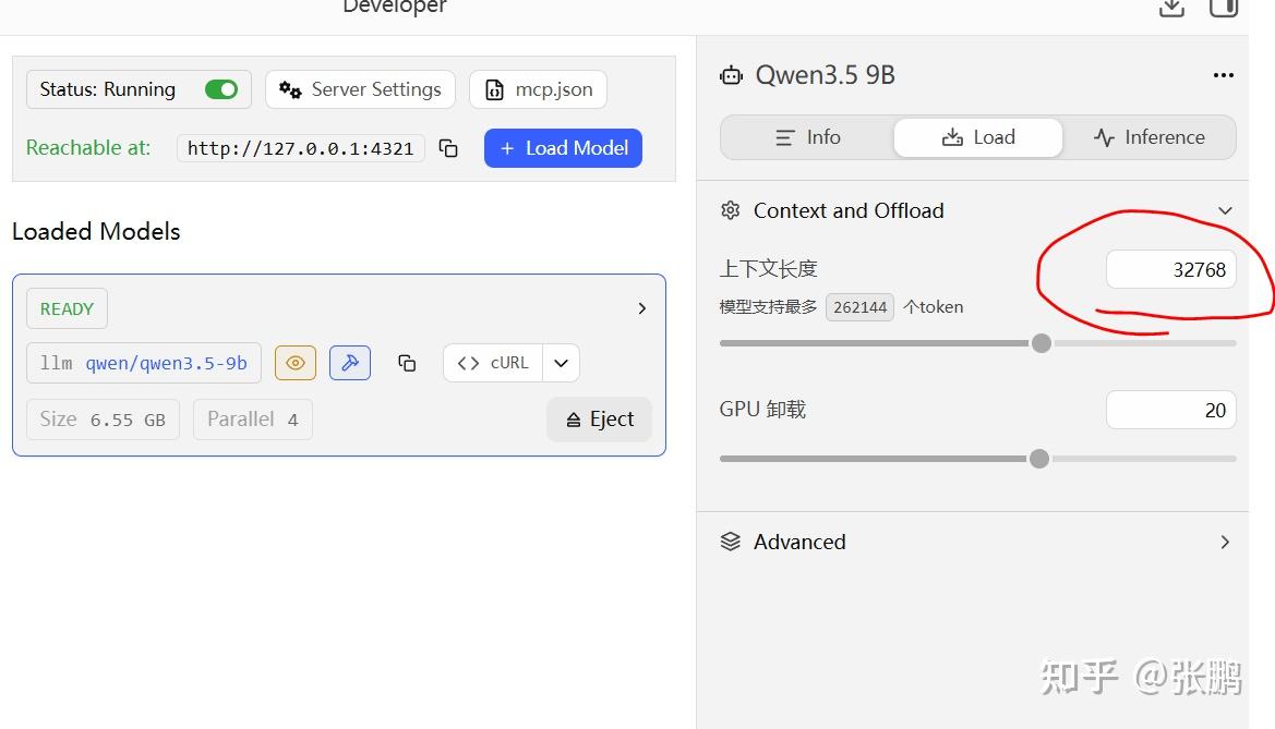 加载模型的相关信息,注意Load处的上下文长度,设置大一点,防止长度不够。