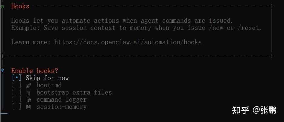 先跳过,后面有需要可以让openclaw自己设置。