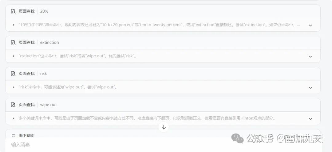 逐步阅读网页内容,展示关键决策动作:extinction、risk、wipe out、翻页等。