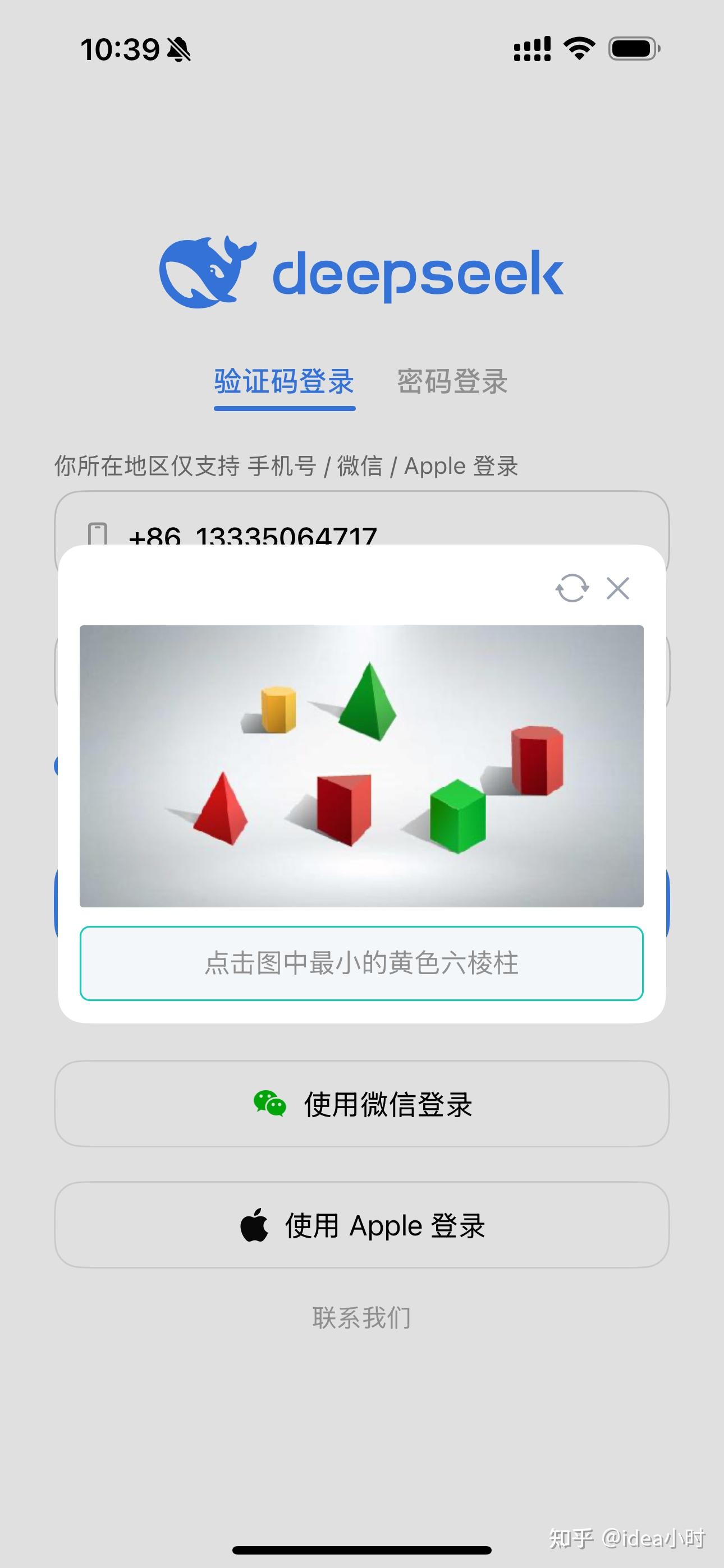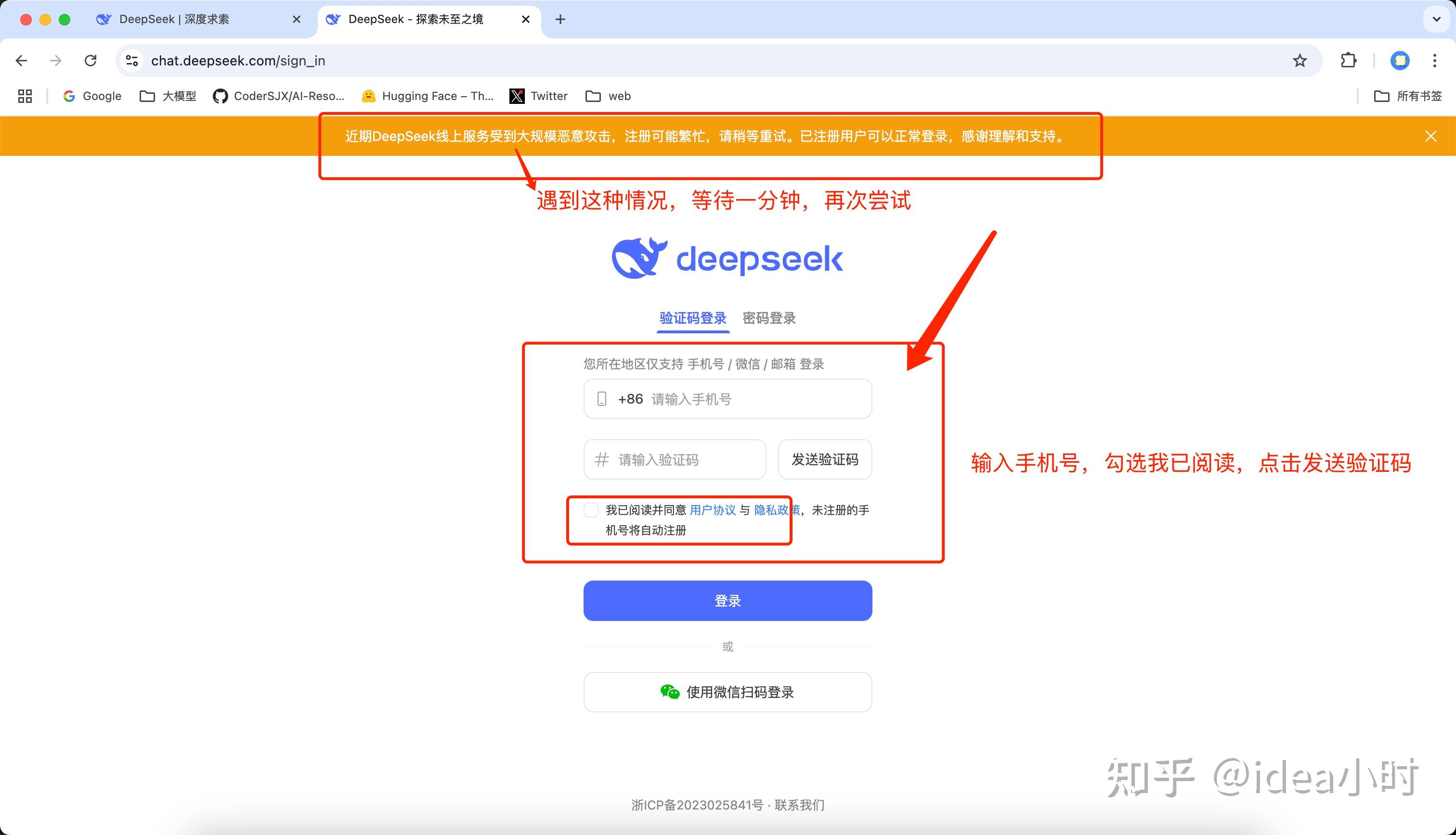 打开DeepSeek官网。输入手机号,使用短信验证码登录。