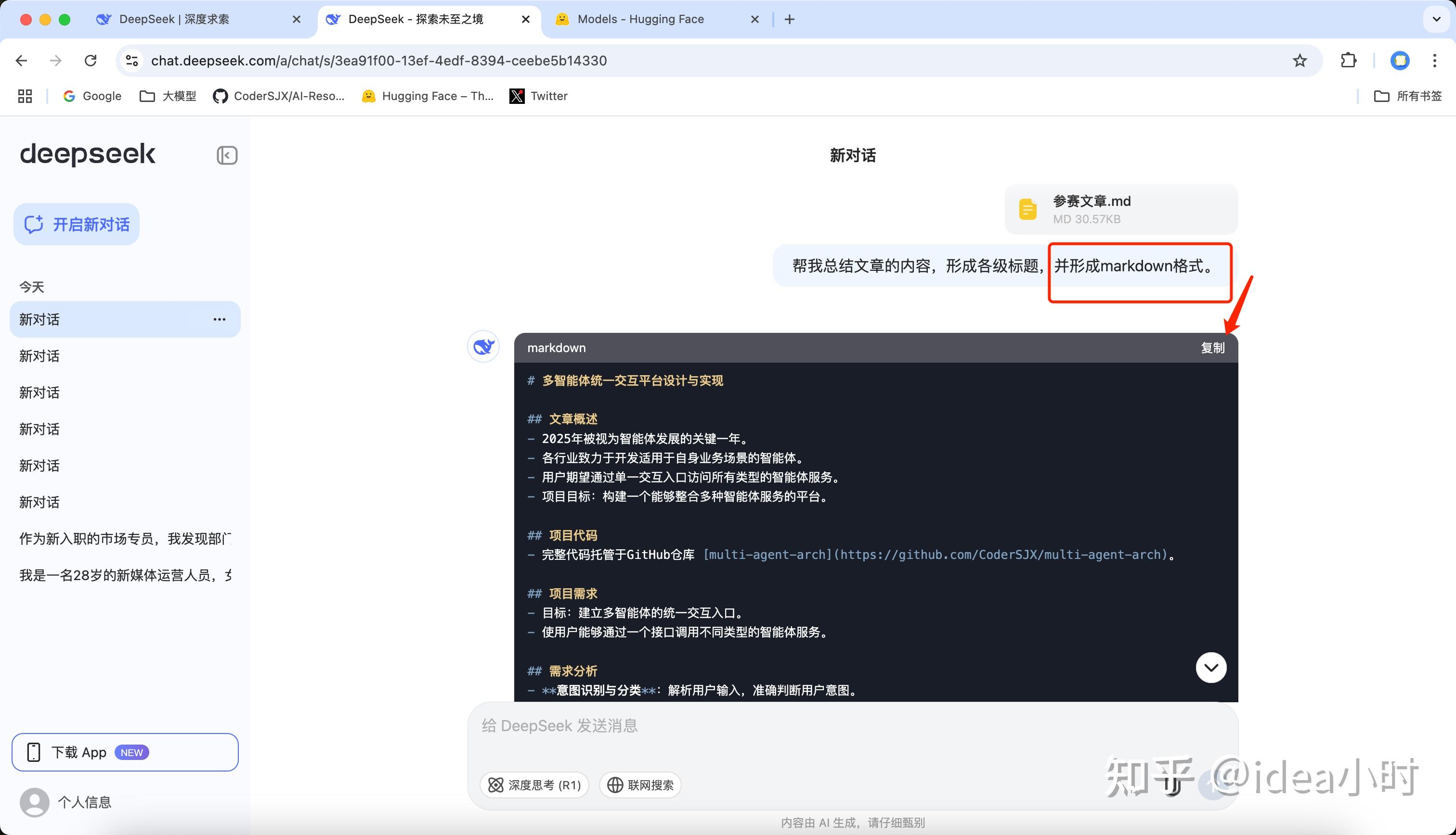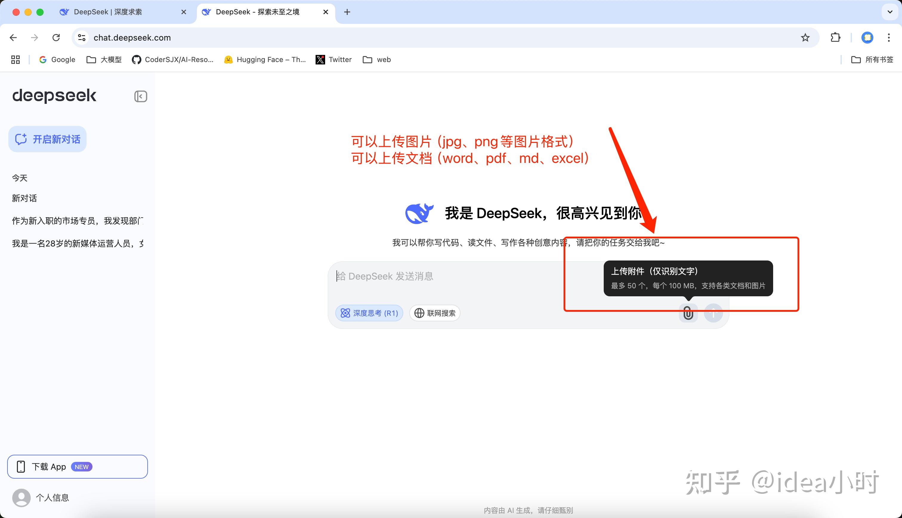 点击附件图标,可以上传附件,让DeepSeek来阅读文档的内容。