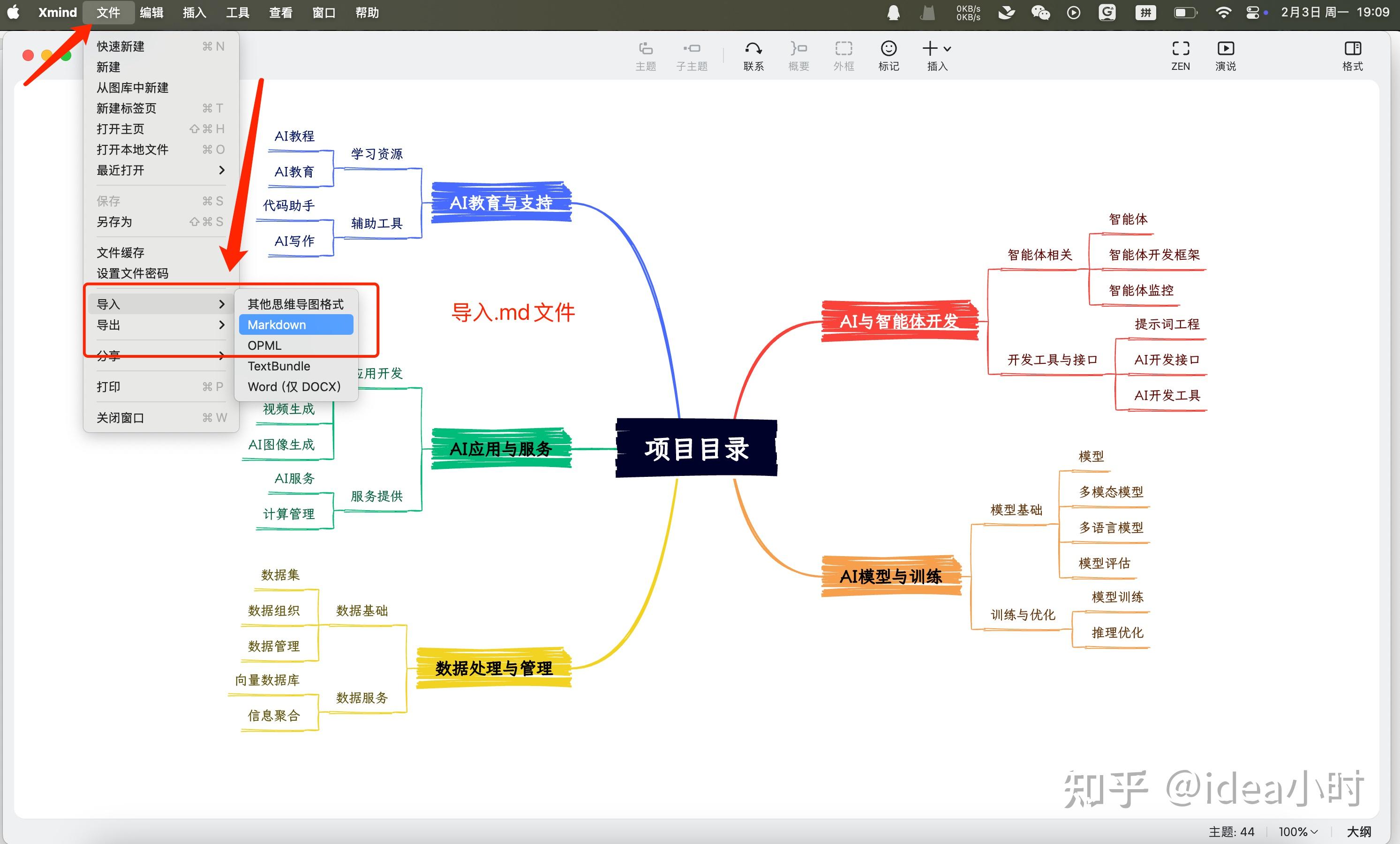 打开xmind,导入markdown文件即可生成思维导图。