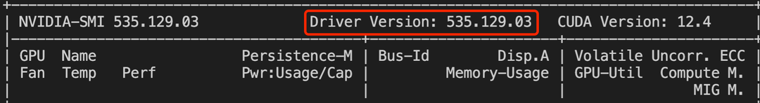 open-r1明确要求cuda12.4,得先瞅瞅自己机器的显卡驱动版本(如下图),要是版本太老,那可就得升级才能适配适配cuda12.4,我亲测,显卡驱动版本为470以上就能正常运行,我的版本是535。
