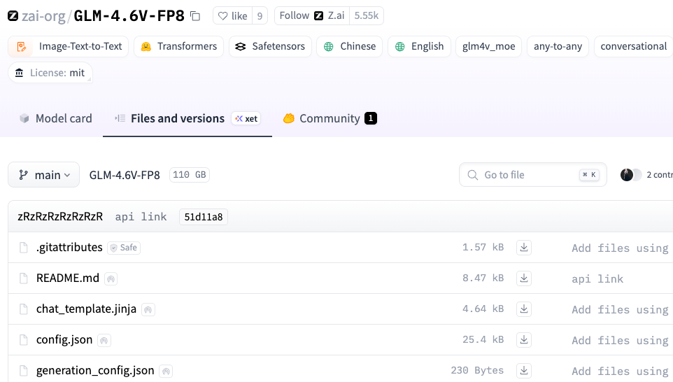 另外,除了我们重点介绍的 Flash (9B) 版本,官方还提供了 FP8 版本的仓库(主要是针对 106B 大模型的量化或特定优化版本),有兴趣且显存充裕的同学可以关注:https://huggingface.co/zai-org/GLM-4.6V-FP8/tree/main