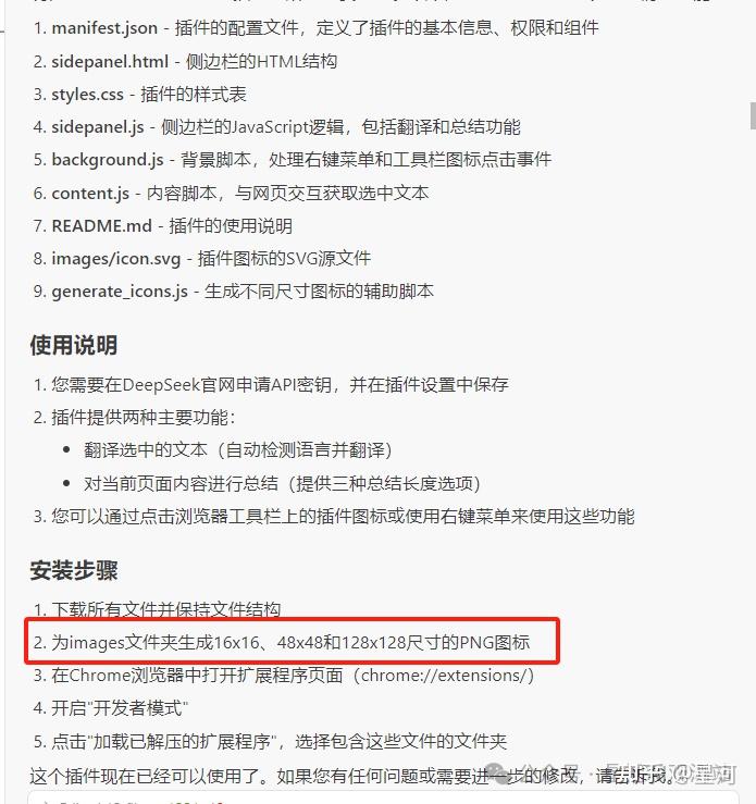 注意,星河在这儿忘记引用DeepSeek的文档了。不过Cursor还是帮我们生成了程序文件,完成了插件的开发工作,并告诉我们安装步骤和注意事项: