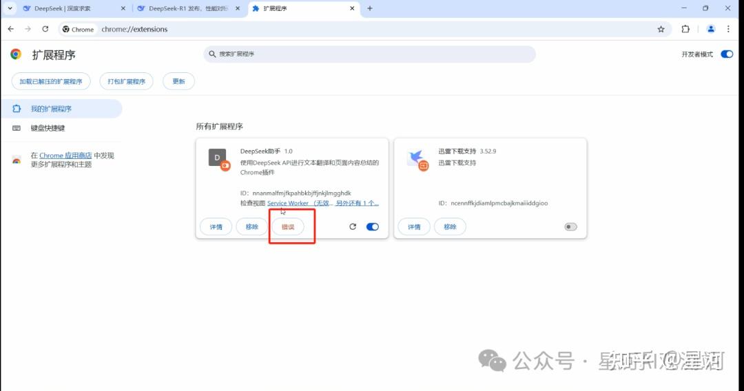 如果顺利的话,就可以看到我们的插件加载成功了。当然,开发一般来说都不会这么一帆风顺。那么这个时候我们只需要将出现的错误,复制给Cursor,然后让他帮我们解决就可以。查看错误的地方有两处: