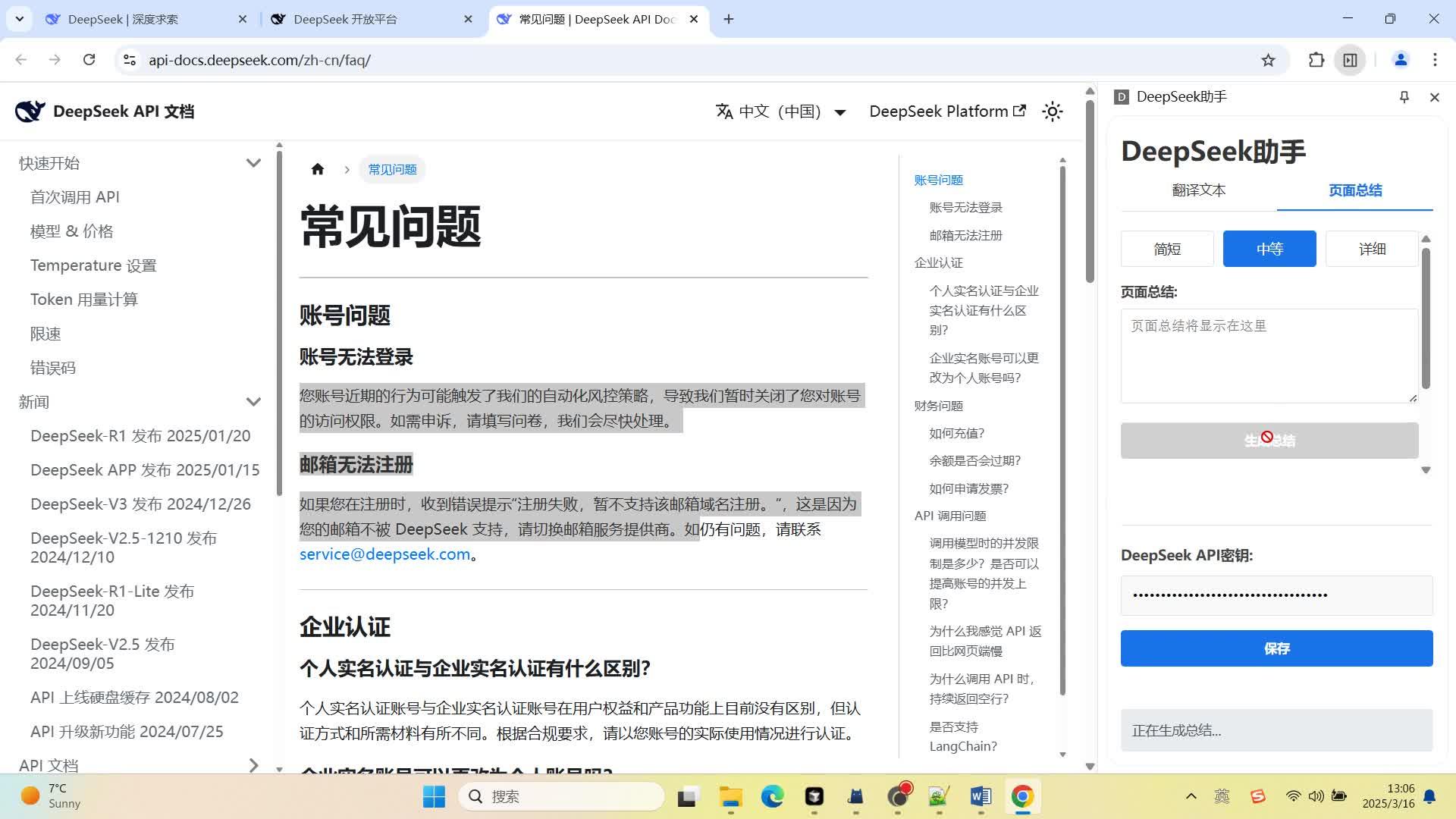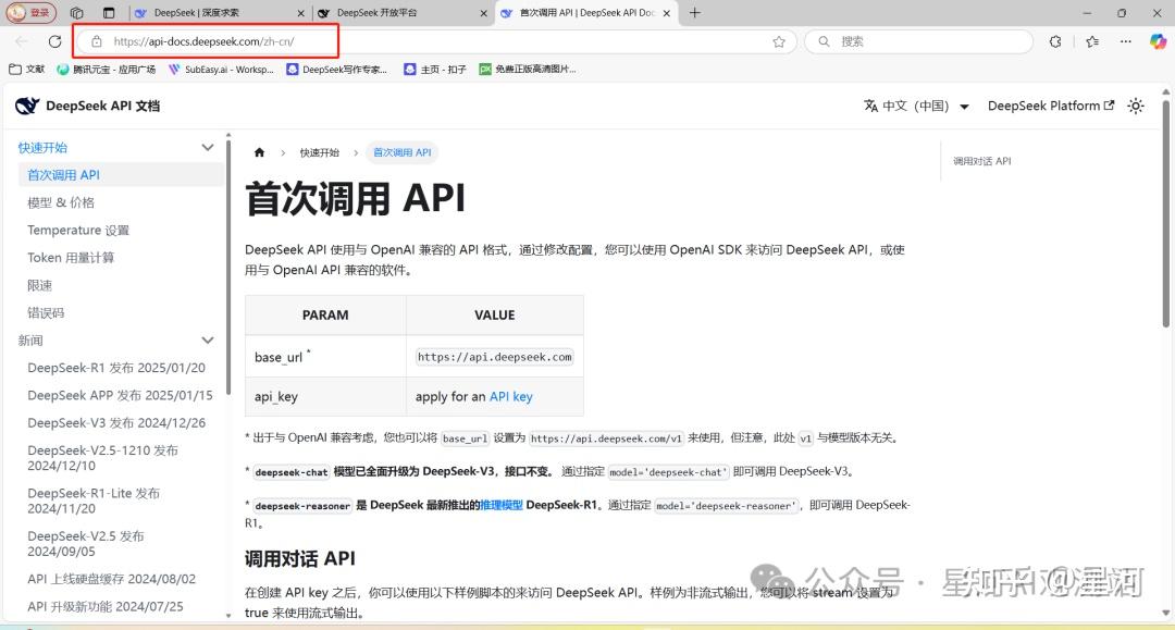 2)登录DeepSeek官网,确认DeepSeek API文档网络地址:https://api-docs.deepseek.com/zh-cn/