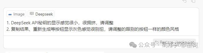 它帮我们修改了mannifest.json文件,这个问题应该是解决了。但是刚才星河忘记引用DeepSeek的文档,因此不确定它是否正确的使用了DeepSeek的API,保险起见,星河引用了DeepSeek的文档后,又让他检查了一下。