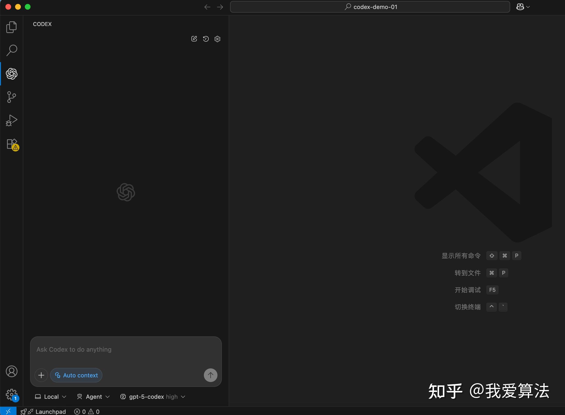 比如你要改什么文件,或者想做什么,直接在输入框输入即可,另外也可以切换你的模型,平时我都是直接使用 GPT-5-Codex(high)。