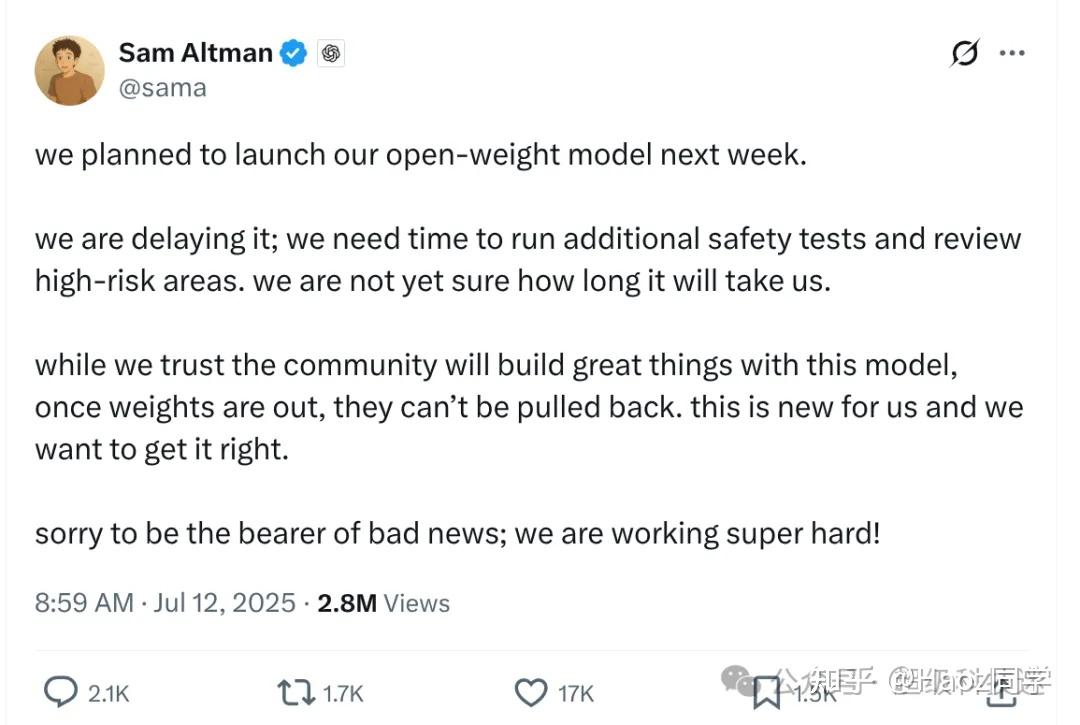 甚至 OpenAI 推迟了原本计划在本周推出的开放权重模型,HackerNews 网友推测也是为了避开 K2 的风头。