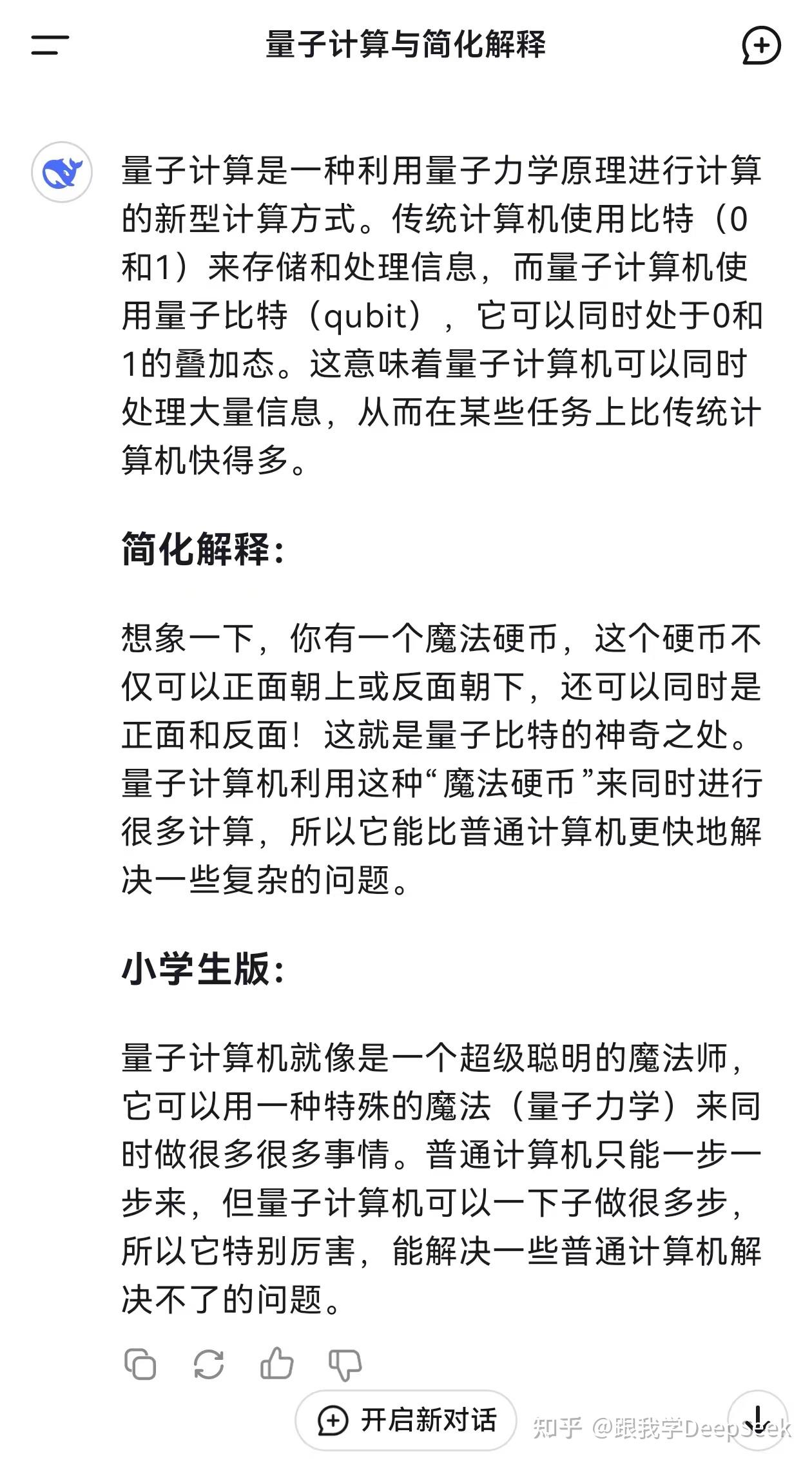 看看,DeepSeek对量子计算的解释确实简单明了,小学生也能看懂。