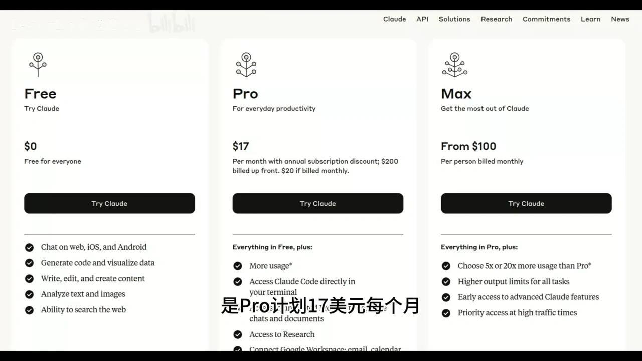 Pro计划每月17美元,Max计划起价100美元。我目前使用的是Max计划。