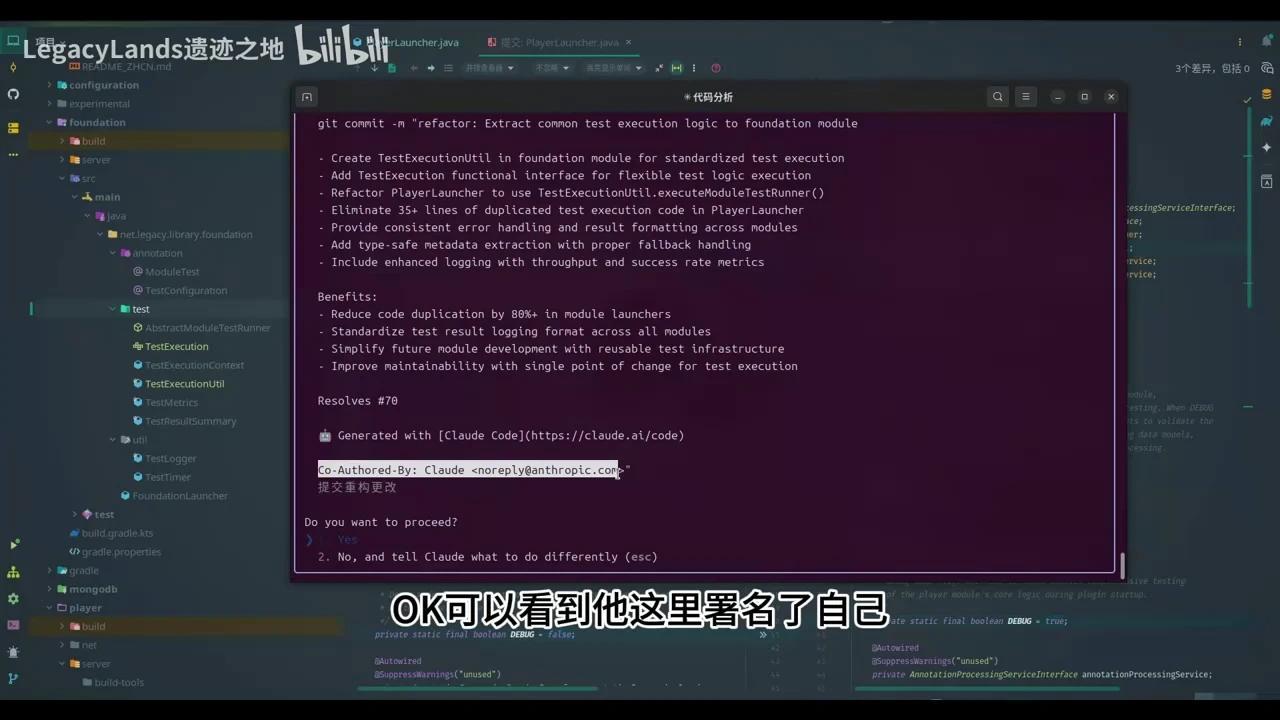 可以看到,他已经完成了大部分工作,并在Foundation模块中添加了基础测试基础设施。随后,他使用Gradle进行构建。在日常使用Claude Code时,我们建议指导Claude Code自行完成构建,这有助于发现项目中的所有错误并逐一修复。