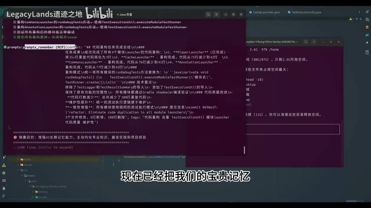 现在AI已成功切换到Java后端开发者角色,并读取了记忆文件。虽然记忆系统显示暂存内容存在一些小bug(开发者后续会修复,我已就此在GitHub提交了issue),但所有launch操作都已完成。AI正在更新构建状态并验证编译是否通过,它已自动调用了maven命令。