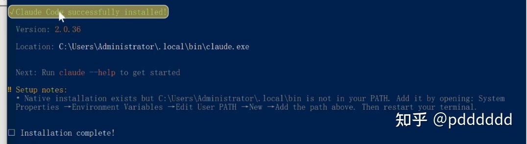如果安装提示 C:\Users\Administrator.local\bin 不在系统路径中,需要手动添加: