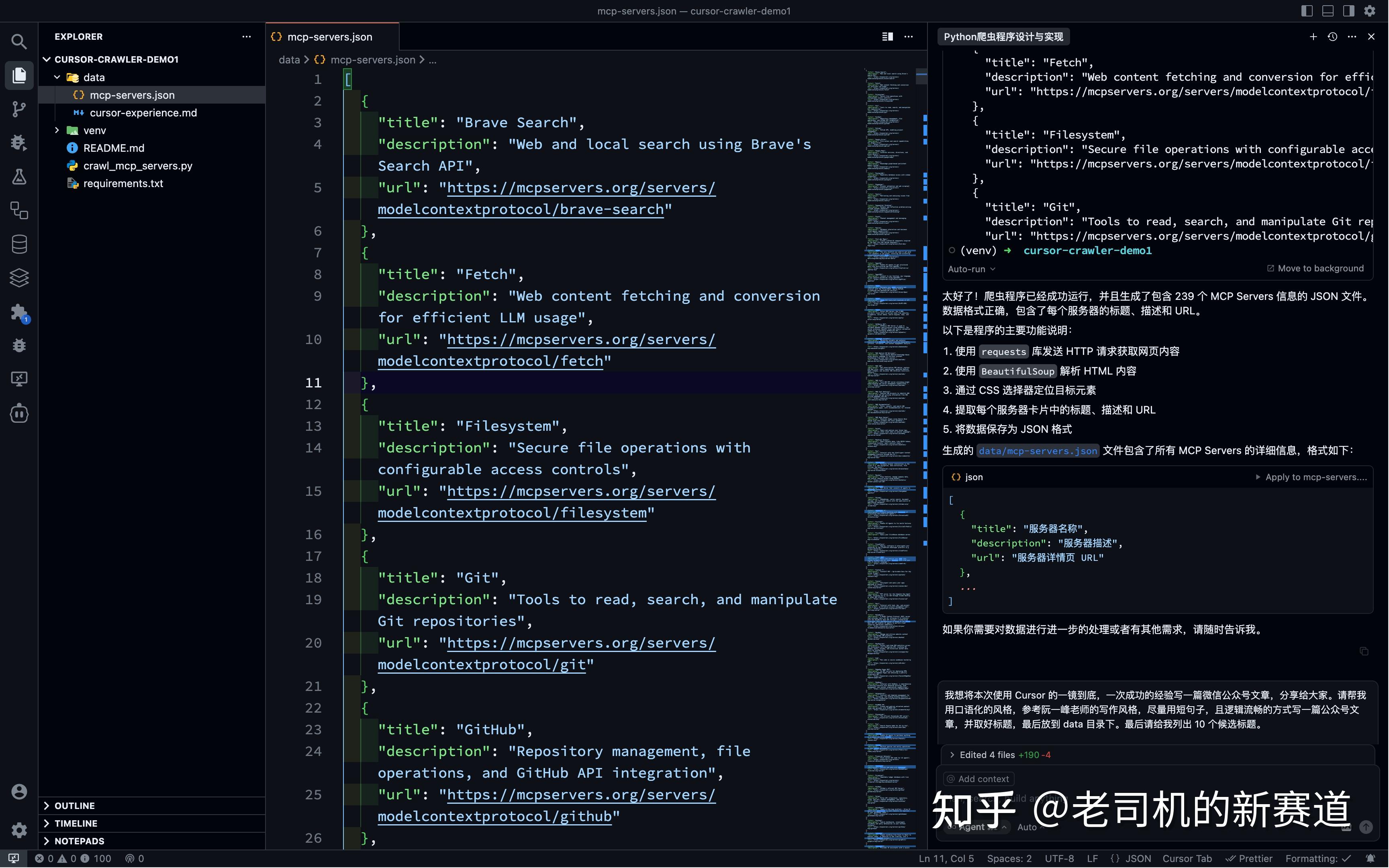 - 将提取的内容保存到一个 data/mcp-servers.json 文件中。