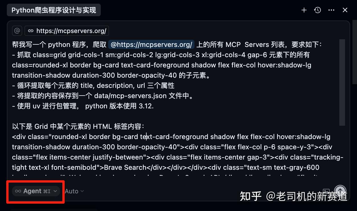 确认一下模式是不是 Agent,没问题就点“发送”。
