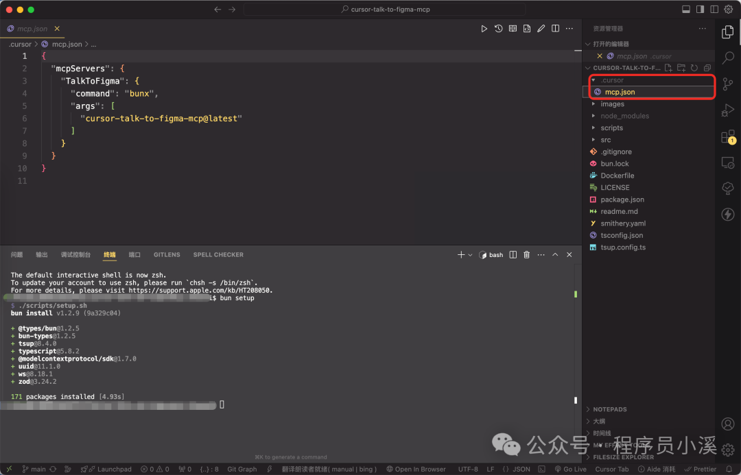 该命令会在当前项目根目录创建一个 .cursor/mcp.json文件,这是Cursor MCP服务的配置文件,但是这种形式需要使用 Cursor 0.46 及更高版本,我这里使用的还是 Cursor 0.45 版本,需要进行略微改动,后面再说