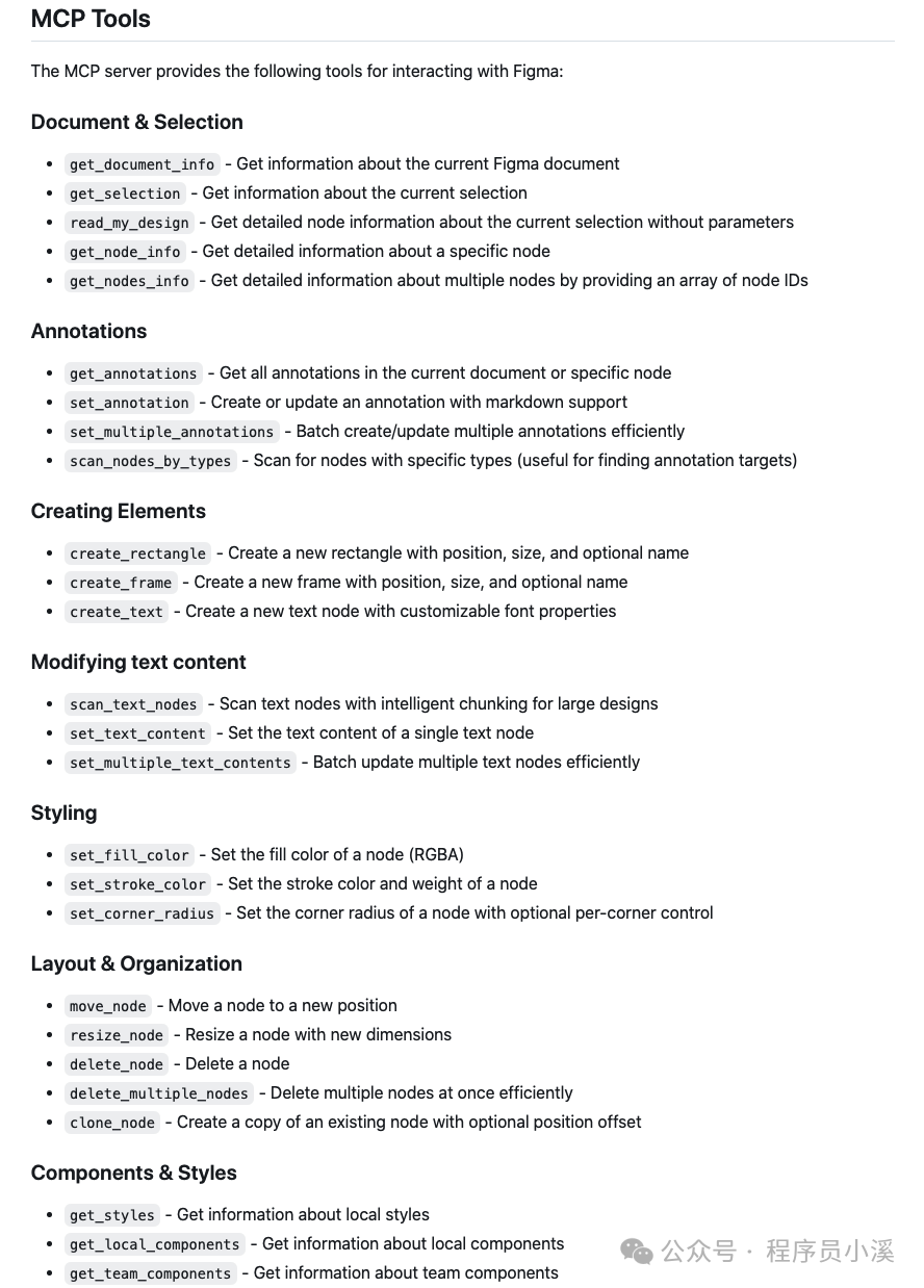 Cursor Talk to Figma MCP提供了很多Figma操作的工具,感兴趣的小伙伴可以了解下具体工具的内容