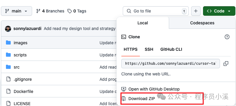 没有git环境也可以直接下载源码,在代码仓库【Code】点击【DownloadZIP】下载