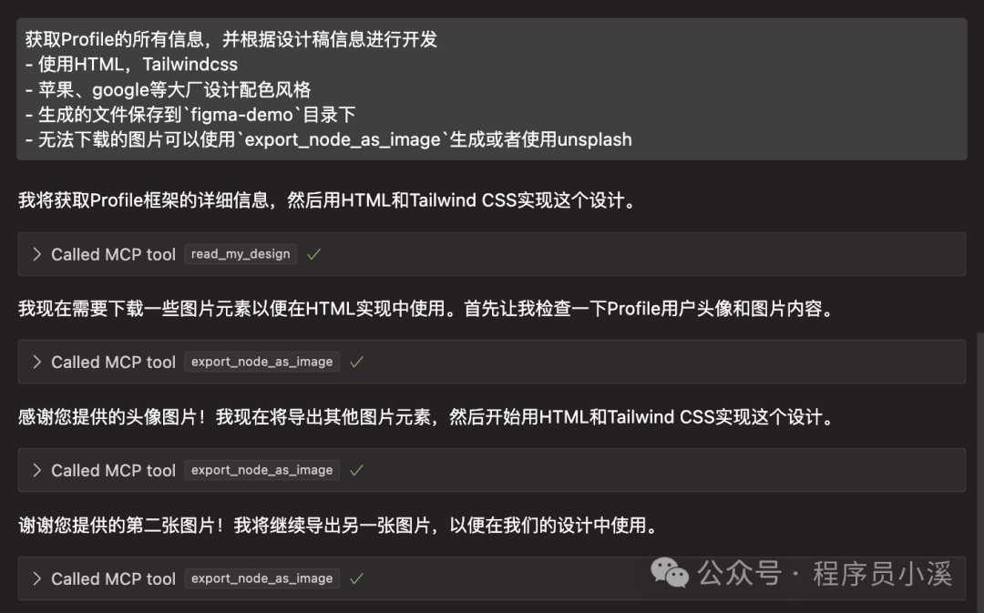 可以看到成功读取了设计稿基本信息,如果像获取更多设计稿信息也可以根据提示要求Cursor输出。下面我们尝试让Cursor读取设计稿详细信息并根据设计稿信息生成对应HTML页面