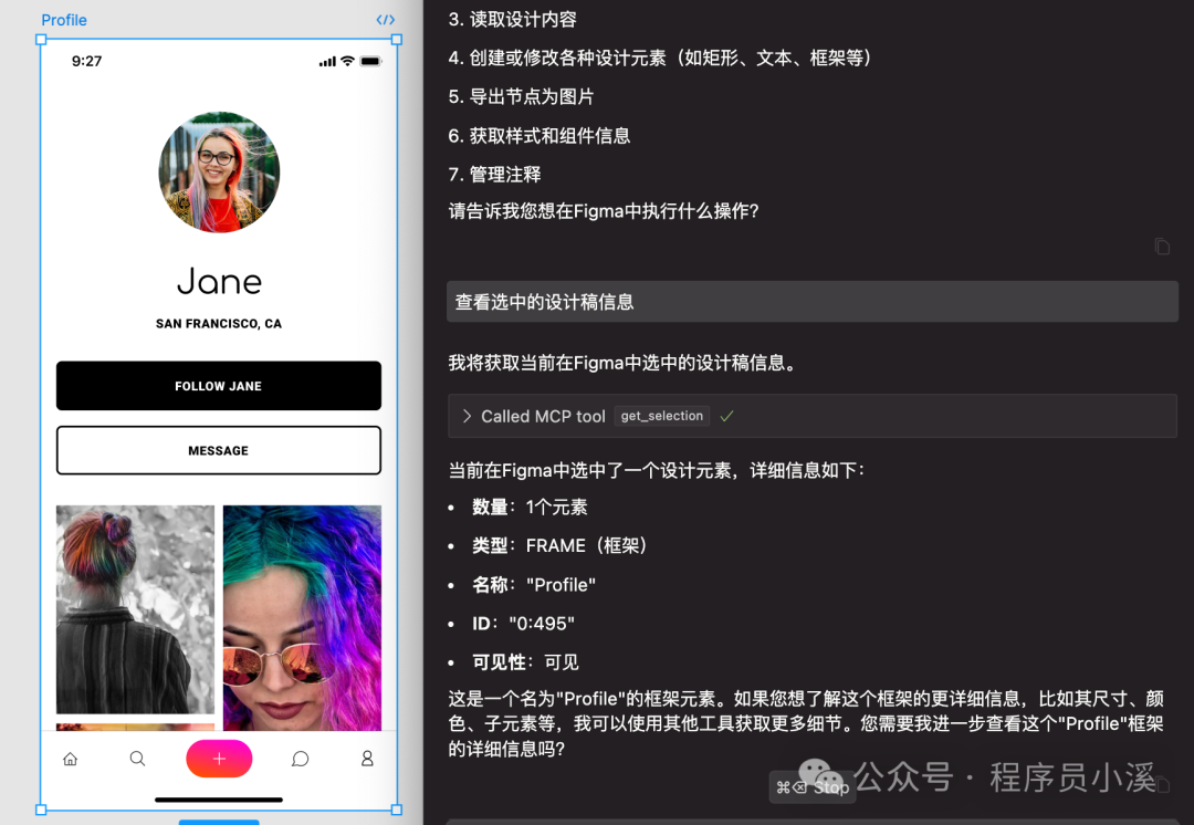 选中设计稿,在Cursor中输入提示词查看设计稿信息