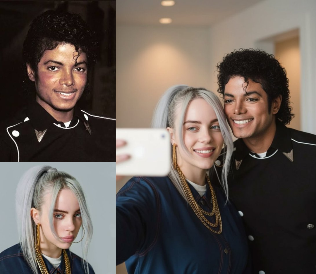 有网友用 Nano Banana 让碧梨和迈克尔・杰克逊跨时空自拍: