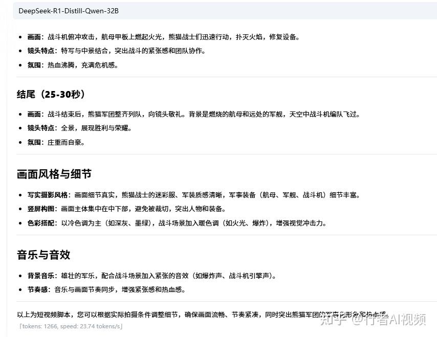 使用简单提示词生成的短视频剧本,不比使用调教提示词生成的效果差,还带上了画面风格和背景音乐建议。
