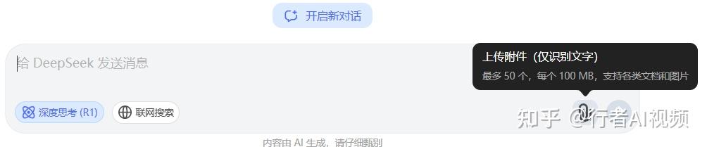 DeepSeek 的推理模型不仅能够联网,还支持上传附件(最多 50 个,每个不超过 100MB)。