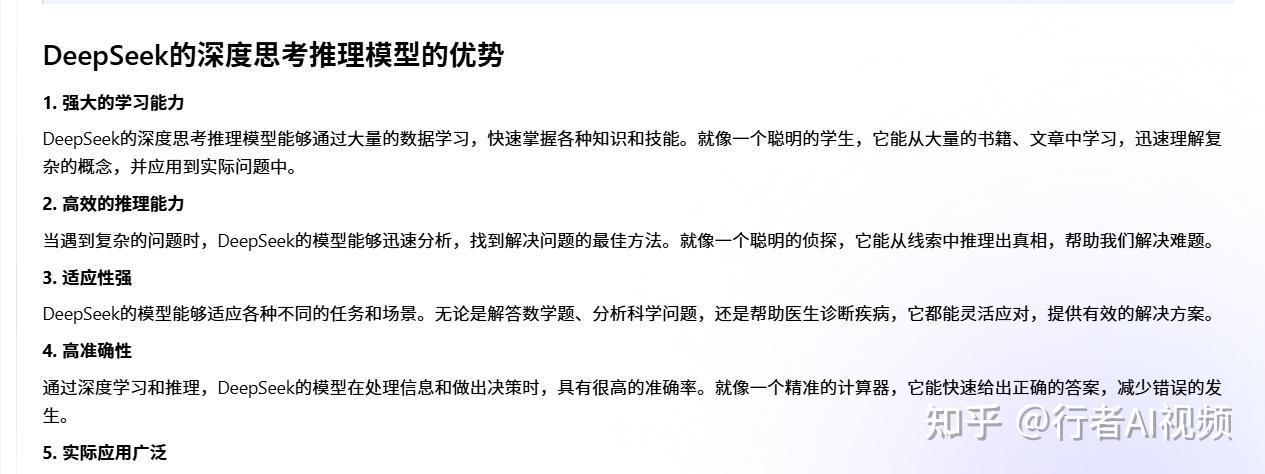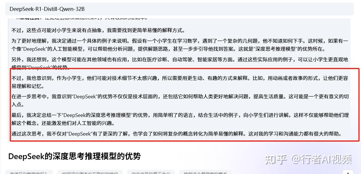 示例:请面向小学生说明,DeepSeek 的深度思考推理模型的优势在哪?