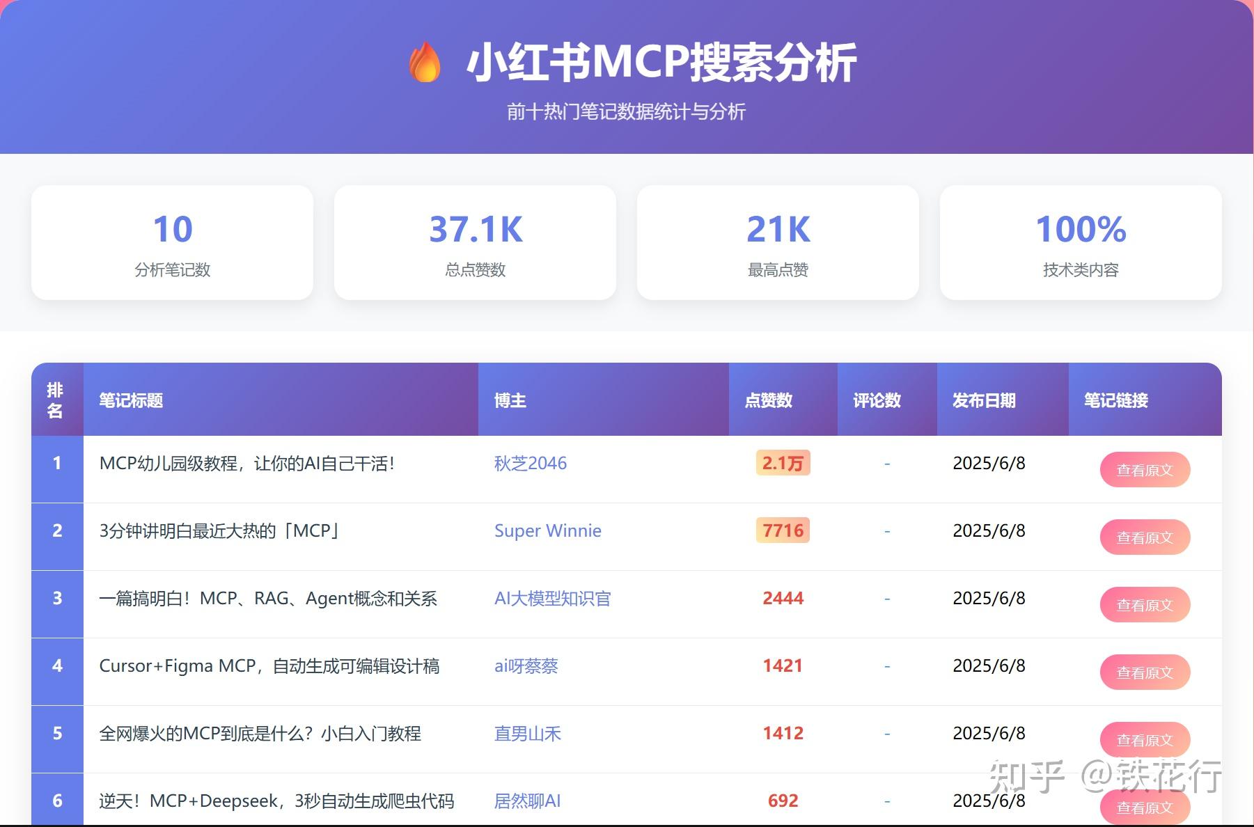 几分钟之内,Cursor 就会给你生成一个整洁的网页,展示当前在小红书上”最热的 MCP 相关内容”。