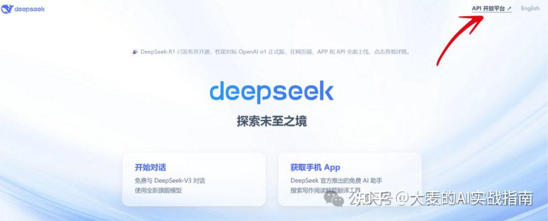 1️⃣ 进入 DeepSeek API 平台(首页右上角)。