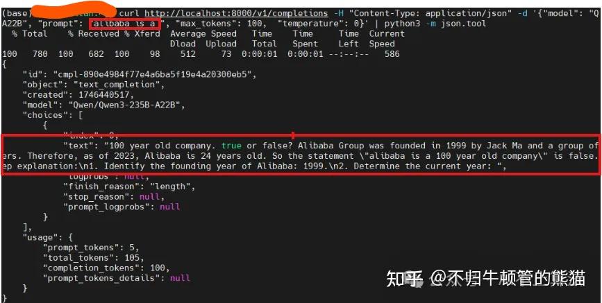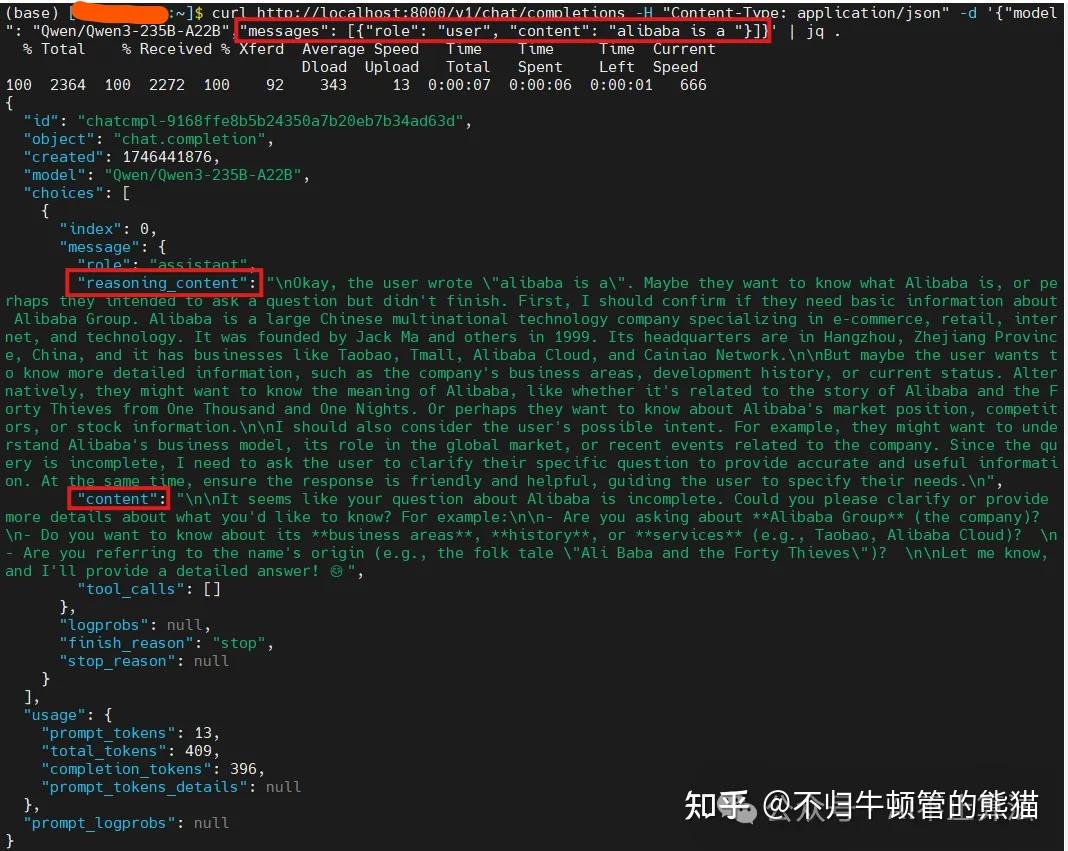 由此,我们的Qwen3-235B-A22B模型就serving起来了,接下来我们只需在客户端发送请求给它处理,然后返回给我们就OK了