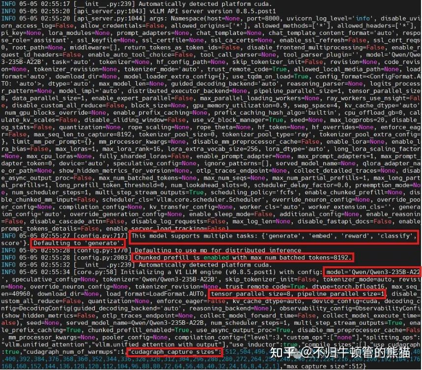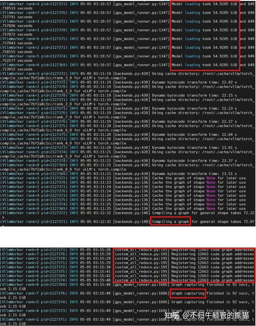 最后,总结一下,我们本文示范了使用vllm部署使用Qwen3-235B-A22B的基本过程,并且解析了log,展示了整个过程做了哪些事情,成功把模型部署在了某个地址,最后朝这个地址发出请求即可得到响应。后面将根据读者反响考虑再展示一下SGLang如何来部署模型,并且探索vllm和SGLang的服务性能。