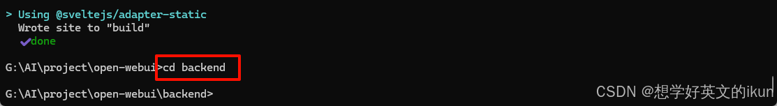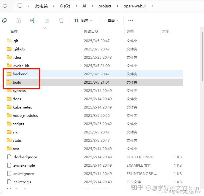 我们进入 Open-WebUI 容器内部,仔细观察会发现,主要是两个文件夹起作用(backend、build)