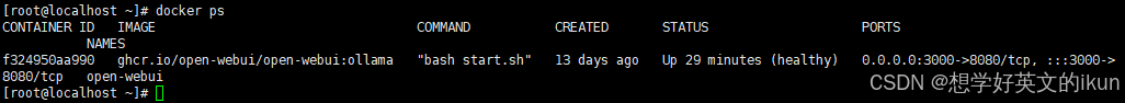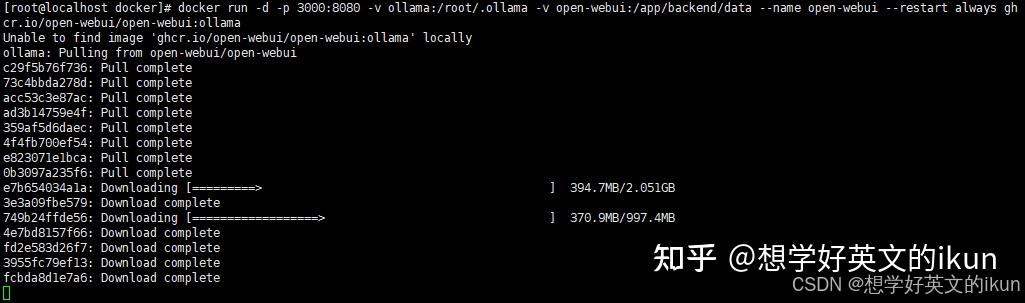 博主采用的是“捆绑 Ollama 支持的 Open-WebUI”部署方式,执行命令后的效果为