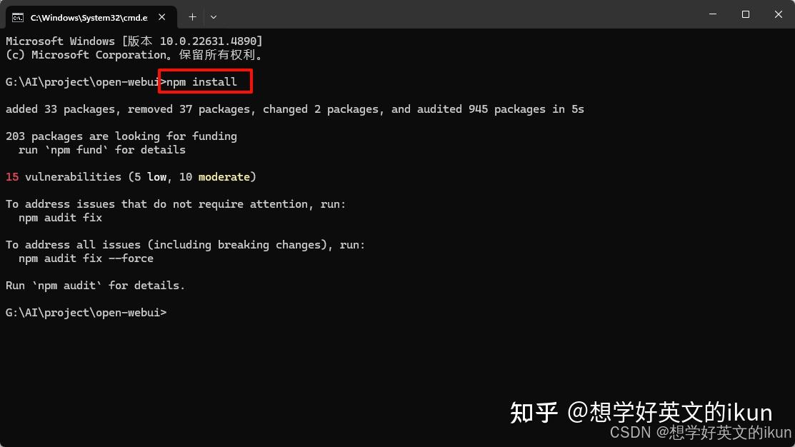 - 在项目根目录下,执行以下命令,安装前端依赖