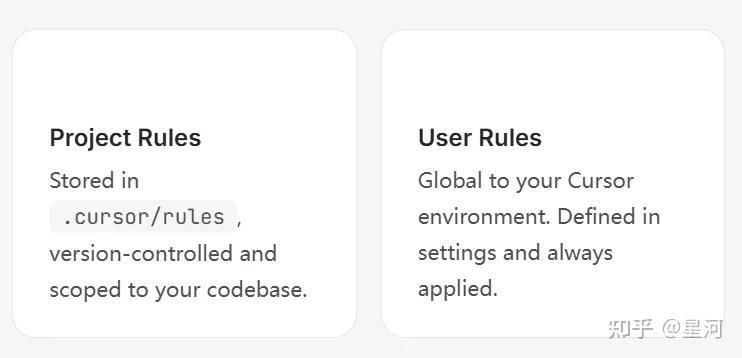 Cursor主要支持两种类型的规则:用户规则(User Rules)和项目规则(Project Rules)。