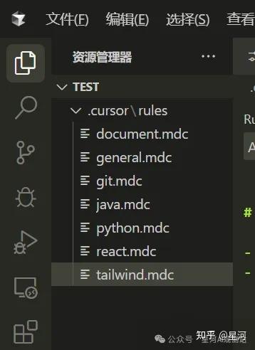 在项目规则中,我们可以按不同维度制定不同的规则文件,例如在开发管理层面,我们可以创建general.mdc来指定通用开发规范,创建git.mdc来指定git提交规范,创建doc.md来指定文档编写规范等;在编程语言层面,我们可以针对不同的语言指定不同的编码规范,例如java.mdc,cpp.mdc,python.mdc等;对于不同的技术框架,我们也可以针对性的进行规则制定,例如创建react.mdc让React组件设计和Hooks使用,创建tailwind.mdc作为Tailwind CSS样式指南等。