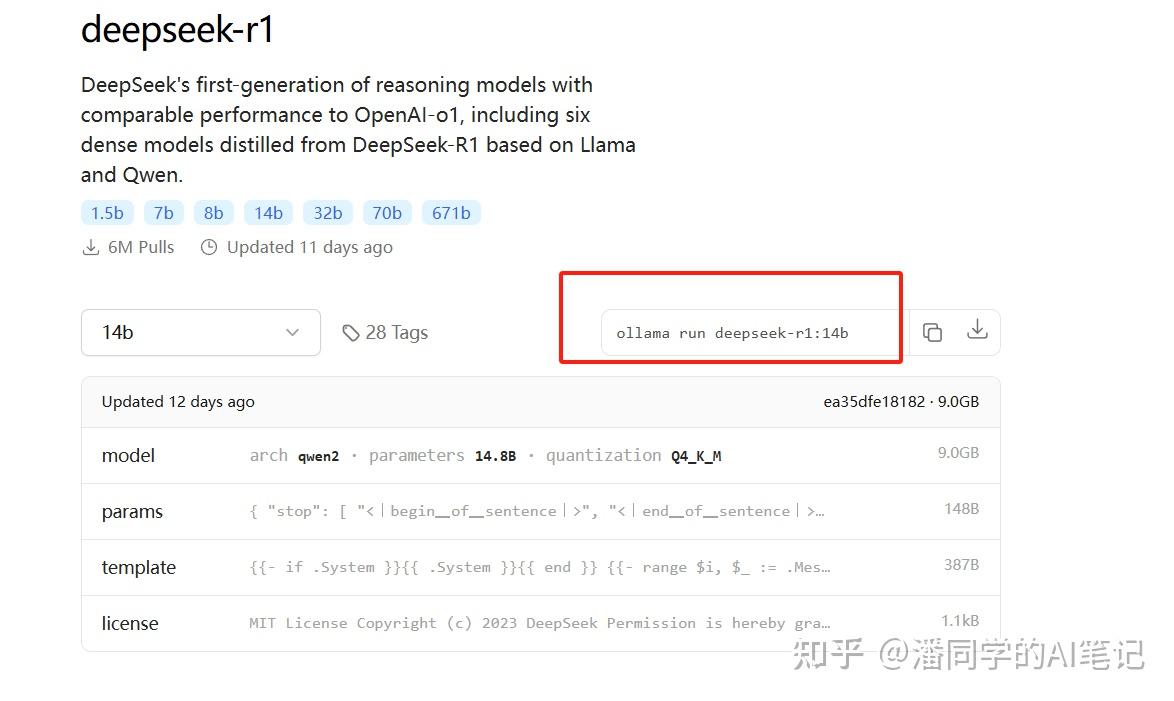 我这里选择14b的模型,参数越大,使用DeepSeek的效果越好